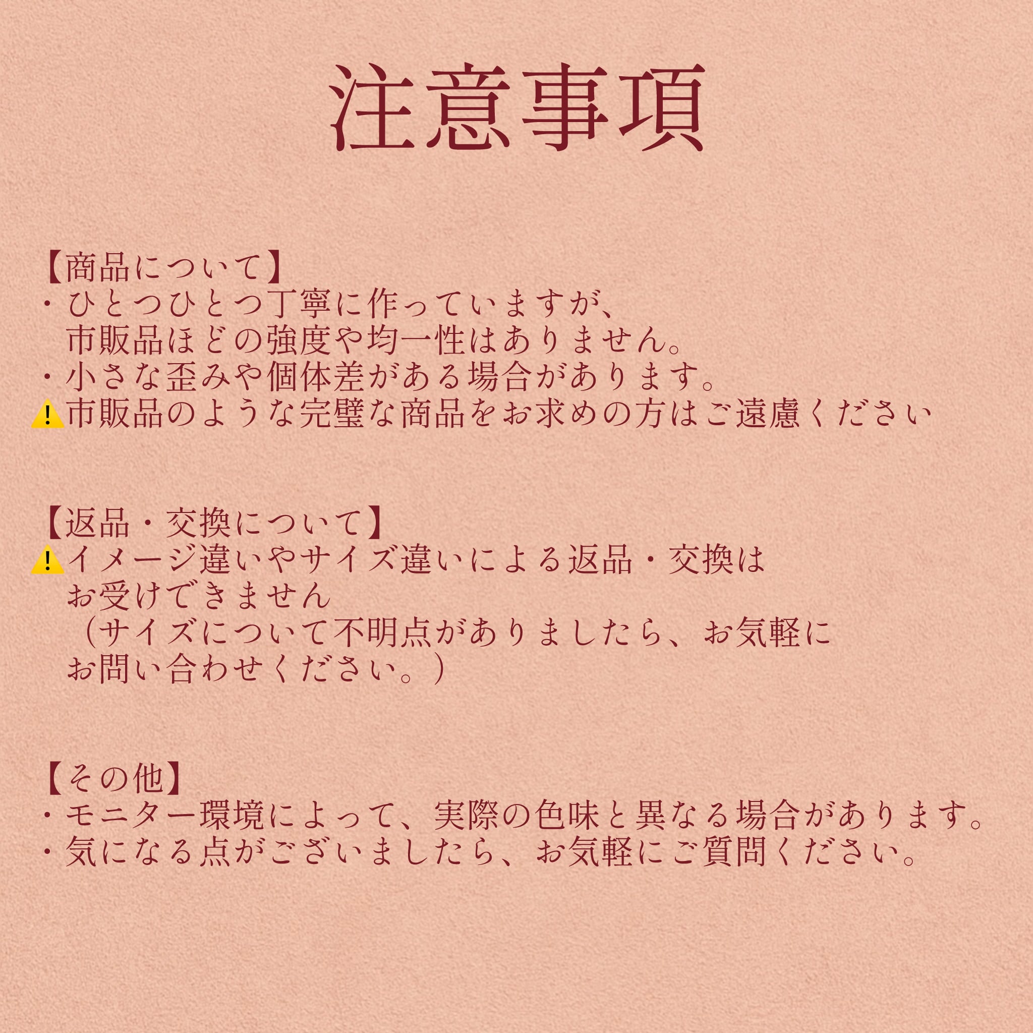 ・小さな歪みや個体差がある場合がありますので、市販品のような完璧な商品をお求めの方はご購入をご遠慮ください。